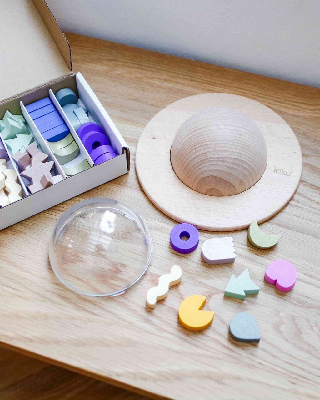 試著將這些可愛小積木放到飛碟邊緣,看看大家是否都安全地登上UFO基地呢?