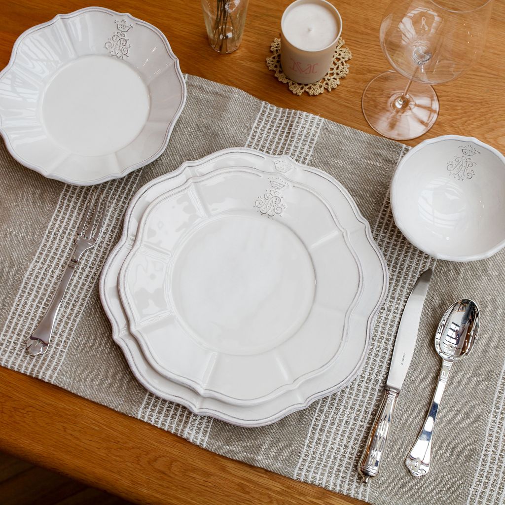 餐盤設計皆有如花瓣般的優美弧線,盤緣上點綴著皇冠浮雕樣式,氣質高雅卻不顯浮誇。