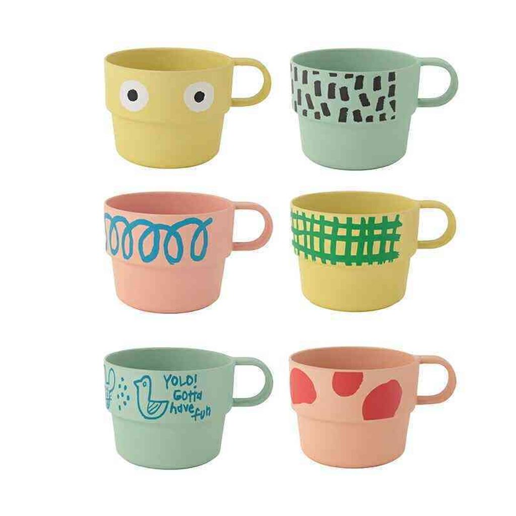 手繪風塗鴉設計加上活潑的選色,杯盤亦可隨意搭配,讓用餐時光是那麼地可愛美好。